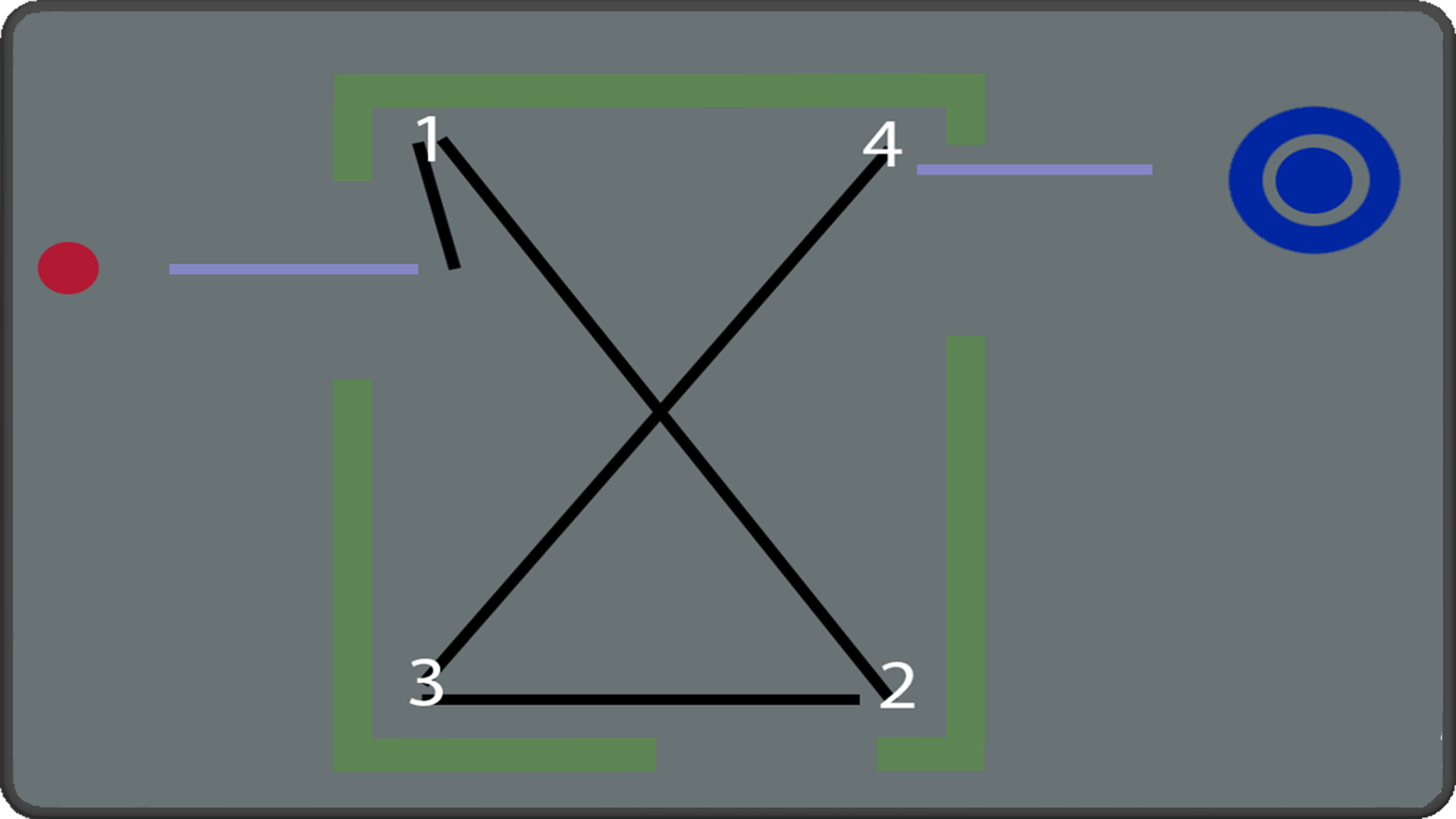 When the AI enters a house it calculates the location of the corners. It then decides which corner is the closest to its current location and after that it decides which corner is the furthest. This is then done again ignoring the past corners to determine the order the AI needs to visit the corners.